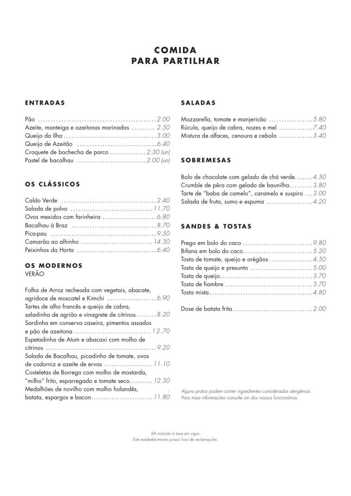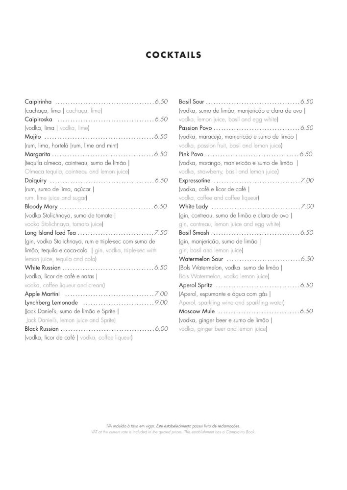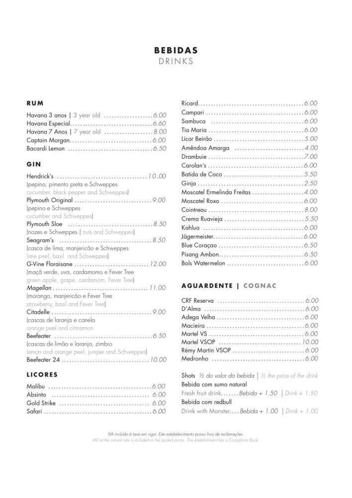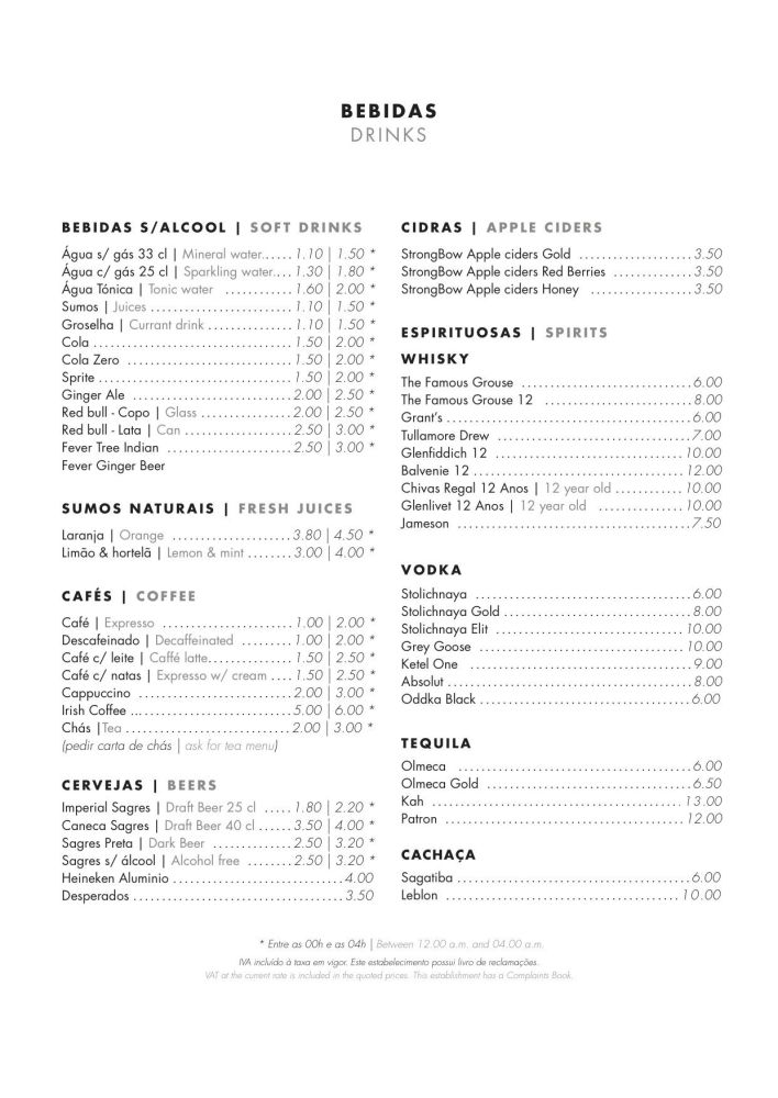 Preço médio do conjunto de cervejas e do conjunto de bebidas brancas disponíveis.